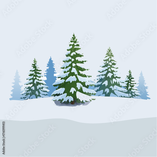winter, countryside, fir, snow, nature, cold, illustration, vector, art, white, blue, frost, elegant, modern, stylish, festive, holiday, ease, austere, decorative, graphic, winter landscape, decoration, glister, christmas, idyl, minimalist, snowflake, tight