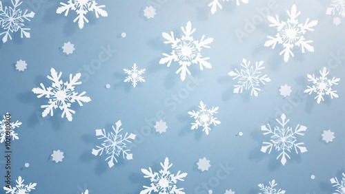 Winter-themed background with white snowflakes on blue for festive decoration and design