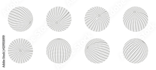 Wireframe Sphere Vector Designs in Different Angles