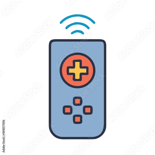remote, wireless, game, buttons, navigation, device, console, play, plus, square, signal, wave, technology, blue, orange, connection, gaming, control, interface, user, design, icon, illustration, vector, communication, contraption, electronic, graphic, modern, flat, joystick, entertainment, interactive, input, symbol, equipment, hobby