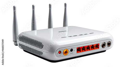 Wireless Router: A modern wireless router with multiple antennas and a sleek design, signifying efficient home or office network connectivity.