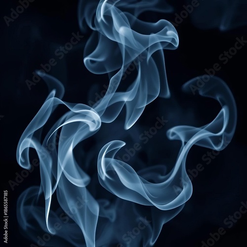 Wisps of white smoke drift across a dark backdrop, evoking mystery and purity, smoke, vapor