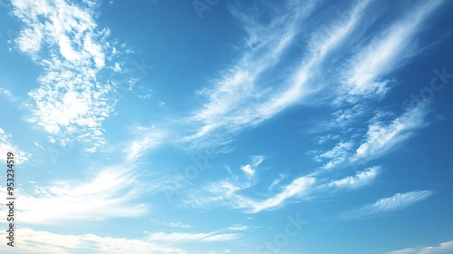 Wispy white clouds are scattered across a deep blue sky, creating a sense of peace and tranquility. The vastness of the sky evokes a feeling of awe and wonder