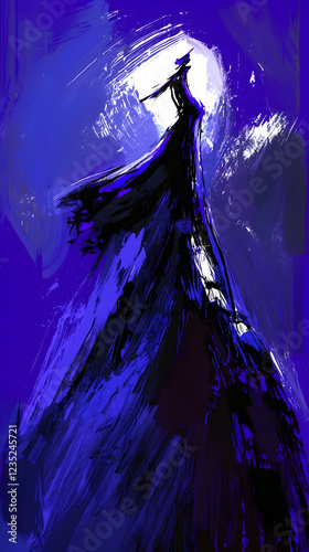 sorcerer, silhouette, mountain, moon, sky, halloween, fantasy, art, poster, night, magic, woman, cloak, darkness, mystical, supernatural, gothic, mysterious, purple, blue, horror, magician, sorceress, spell, witchcraft, power, mystery, eerie, shadow, enchantment, occult, legend, myth, fantasy art, digital artwork, illustration, graphic, design, artwork, image, picture, wallpaper, background