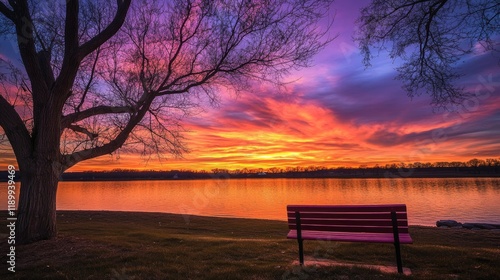 With a wide Angle view of the serene beach horizon, the sunset paints the sky in a stunning display of orange, pink and purple, creating a postcard-perfect scene