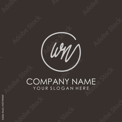 WN initials signature logo. Handwritten vector logo template connected to a circle. Hand drawn Calligraphy lettering Vector illustration.