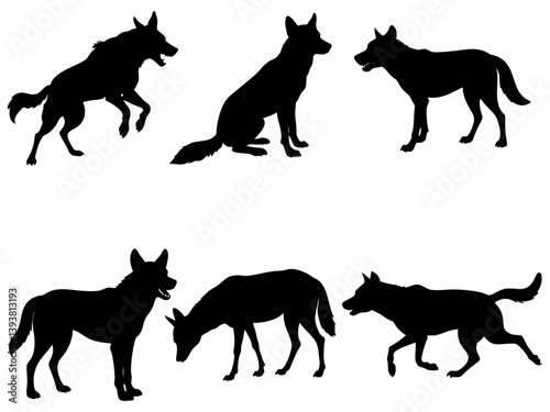 wolf, cut-out, howling, animal themes, illustration, vector, black-and-white, running, animal, playful, pet, silhouette, bundle, black, wild animal, set, cartoon, jump, collection, character, design