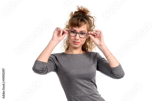 Woman adjusting the glasses