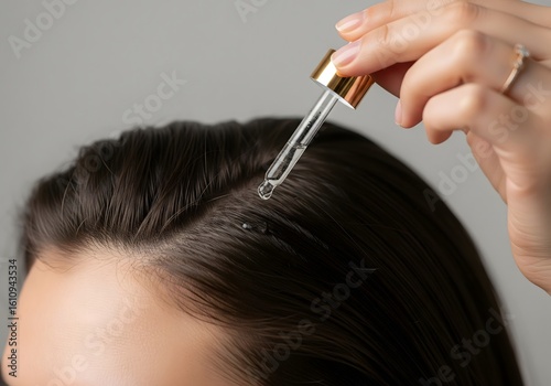 hair, scalp, serum, dropper, application, hair care, treatment, woman, hand, liquid, growth, health, beauty, routine, nourishment, dripped, female, closeup, indoor, studio shot, product, cosmetic, wellness, dermatology, professional, moisturise, strengthen, solution