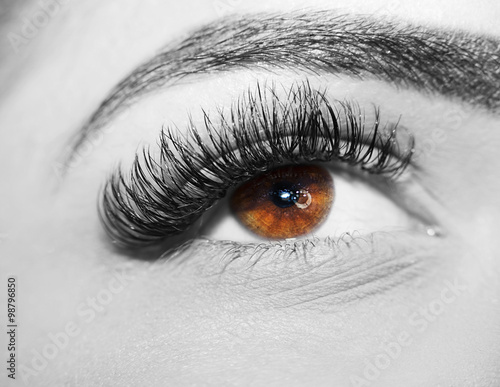 Woman brown eye with extremely long eyelashes