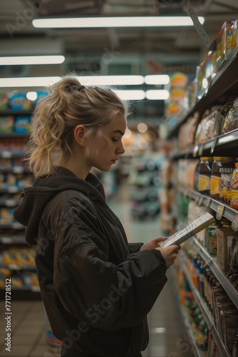 diet, shopping, sale, product, buying, female, market, holding, consumer, purchase, store, food, healthy, grocery, fresh, client, supermarket, woman, choosing, product, comparing, ingredient, decision-making, concentration, nourishment, shopping basket, aisle, shelf, assortment, variety, option, decision, scrutiny, exam, careful, wellness, lifestyle, food market
