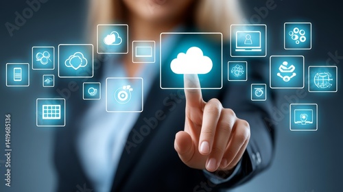 Woman connecting to the cloud, exploring the power of cloud computing for modern solutions