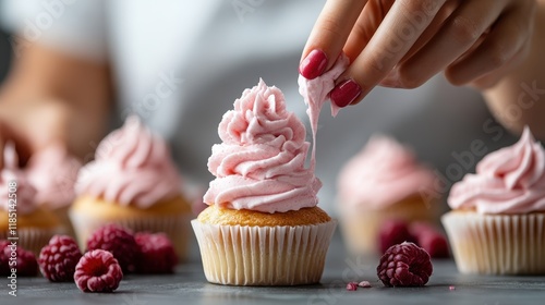 cupcake, icing, whipped cream, baking, dessert, woman, kitchen, raspberry, pastry, frosting, creativity, culinary arts, homemade, decoration, epicure, confectionery, confection, delicious, swirl, fondant, sugar, afternoon, receipe, joyful, artistry, chef, bakery, treat, celebration, festive, cookbook, favor