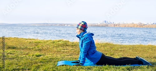 woman, exercise, fitness, physical exercise, sport, training, autumn, warm clothes, banner, doing, female, young, person, girl, lifestyle, outside, fit, healthy, body, adult, people, woman, athletic, beautiful, wellness, sporty, athlete, nature, park, active, activewear, yoga, working out, copy space