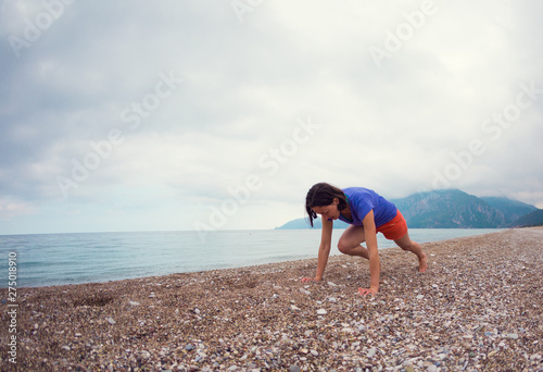 Woman doing sports on the beach.