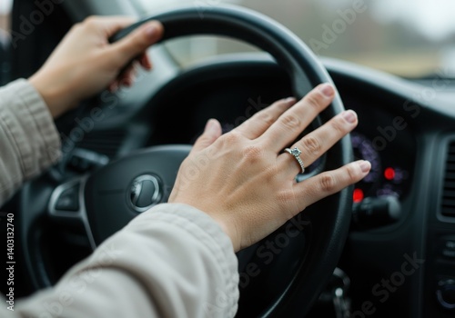 steering, wheel, hand, ring, car, driving, woman, vehicle, interior, driver, seat, transportation, automobile, auto, road, travel, grip, control, safety, drive, finger, jewellery, style, accessory, fashion, design, luxury, modern, lifestyle, traffic
