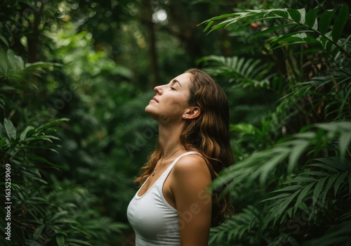 woman, forest, nature, green, leaf, tree, outdoors, peaceful, serene, calm, tranquil, relaxation, meditation, lifestyle, healthy, beauty, young, female, person, natural, environment, lush, foliage, plant, growth, wellness, harmony, zen, escape, fresh