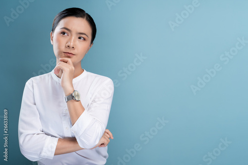 confused, doubt, face, cute, doubtful, uncertain, attractive, thoughtful, uncertainty, confusion, emotion, sad, pensive, expression, looking, casual attire, indecisive, expressing, solution, problem, clueless, thinking, uncertain, choosing, choice, discontent, dissatisfied, embarrassed, lost, upset, guilty, thinks, idea, planning, bored, sleepy, worried, serious, young, woman, isolated, background, female, portrait, caucasian, 1, person, studio, asian, blue