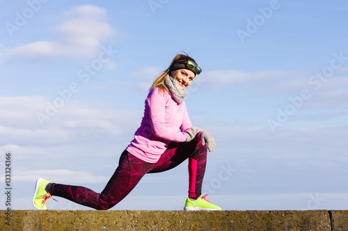 Woman fitness sport girl training outdoor in cold weather