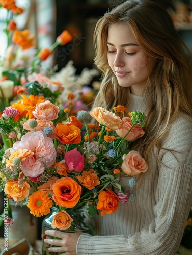 Woman Florist Creating Flower Bouquet on the Table