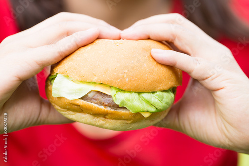 Woman hand hold hamburger