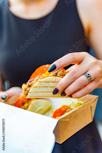 taco, eat, woman, mexican, hand, food, fast food, box, background, baked, cafes, cheerful, closeup, cook, cooking, craft, cookery, desk, dinner, fast, female, heat, kitchen, lifestyle, lunch, market, mayo, meat, new, pita, plate, ready, eatery, roasted, sauce, savoury, sell, snack, spicey, street, traditional, travel, truck, vegetable, seller