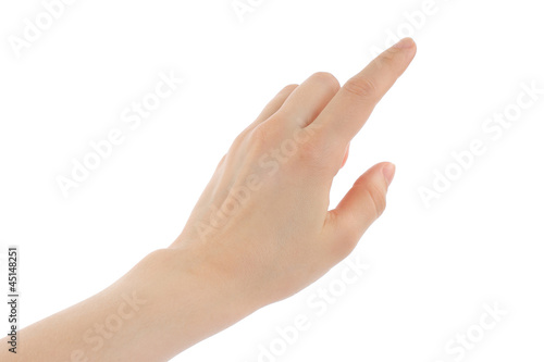 Woman hand on white background