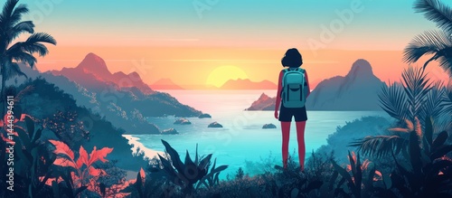 woman, hiking, sunset, tropical, island, ocean, mountain, landscape, travel, adventure, beach, nature, outdoors, scenic, view, sunrise, vacation, serenity, exploration, freedom, journey, relaxation, paradise, colourful, calm, island, mountain, coastal, beauty, explorer, voyage, wanderer, peaceful, tour tourism, destination, relax, holiday, seascape, relaxing