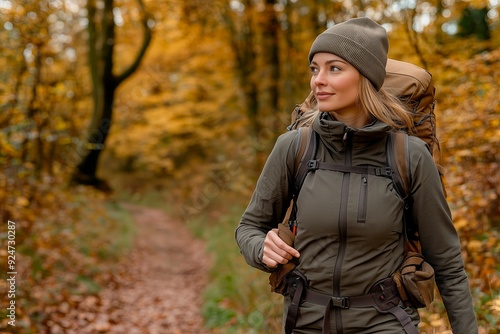 female, autumn, sport, hiking, boot, footwear, shoe, hat, technical, wear, clothes, clothing, wood, jacket, backpack, pack, backpack, photo, glove, woman, forest, trail, foliage, tree, landscape, nature, outdoors, adventure, path, colourful, leaf, casual attire, beanie, scenery, walking, recreation, relaxation, healthy, lifestyle, exploration, tour tourism, travel, seasonal, change, calmness, sunshine, wilderness, environment, sport