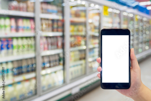 phone, supermarket, mobile, grocery, store, shopper, hand, background, blur, business, convenience, concept, market, consumer, food, mall, retail, shop, lifestyle, product, client, holding, consumerism, interior, super, floor, sale, purchase, hold, hypermarket, closeup, variety, indoor, industry, commerce, mobility