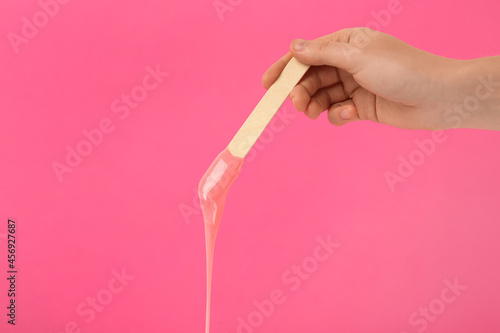 closeup, woman, female, person, hand, holding, apply, adult, wooden, background, spatula, epilation, hot, salon, stick, removal, depilation, wax, beauty, hair, care, skin, procedure, colours, equipment, tool, cosmetic, cosmetology, professional, liquid, flow, pink, space, beautician, application, accessory, spa, applicator, depilate, design