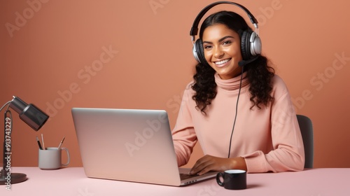 woman, diversity, professional, podcast, recording, microphone, earphones, studio, broadcasting, female, audio, technology, voice, sound, equipment, production, media, communication, digital, creative, content, speaker, host, presenter, radio, interview, workspace, laptop, editing, mixing, music, talk show, online, soundproof, streaming, diffusion, multicultural, broadcast, entertainment, smiling, program