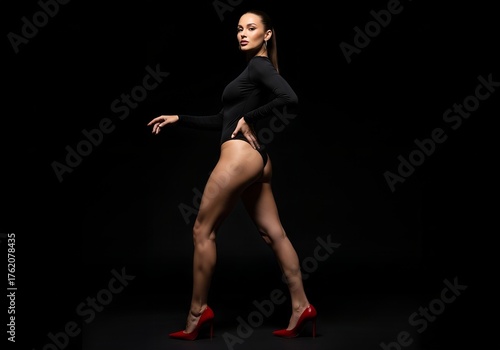 woman, dancing, black, elegance, body, motion, 1, dancer, fashion, fitness, model, jumping, sport, exercise, art, hair, person, ballet, dance, beauty, ballerina, studio, people, posing, pose