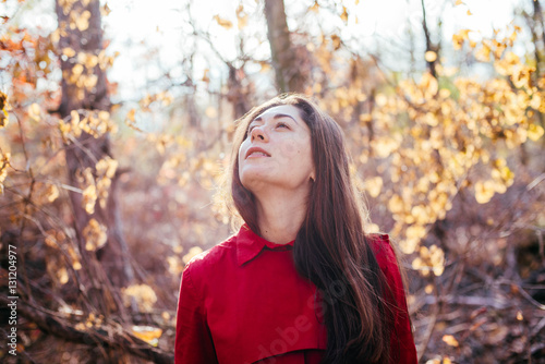 human, tree, leisure, foliage, park, vibrant, green, autumn, red, leaf, yellow, outside, casual attire, people, caucasian, female, fashion, cute, portrait, smile, season, lifestyle, girl, young, forest, woman, fall, colourful, person, beauty, cheerful, beautiful, nature, happy, relaxation