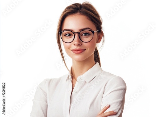 businesswoman, goggles, light background