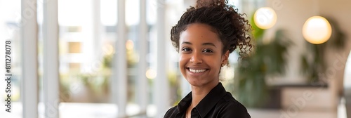 woman in business clothes smiling in office