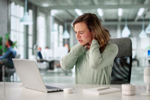 ergonomic, woman, pain, neck, chair, office, posture, workstation, stretching, in, behind, stretch, back, shoulder, bad, business, to sit, stiff, men at work, computer, stress, backache, body, using, ache, badly, desk, corporate, woman, ache, desktop, girl, lady, suffering, young, female, space, muscle, caucasian