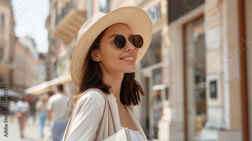 shop, woman, summer, shopper, fashion, female, lifestyle, young, client, sale, consumerism, spring, street, retail, beautiful, clothing, shopaholic, portrait, sunglasses, joy, buyer, gift, window, city, buy, store, people, looking, purchase, bag, showing, mall, casual attire, shopping centre, front, shopping bag, money, laugh, holding, standing, person, elegant, boutique, sunny day, display window, happy, spending, cheerful, luxury