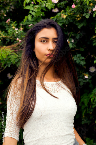 adult, attractive, beautiful, beauty, bright, closeup, enjoy, expression, face, fashion, female, girl, green, hair, happy, joy, lady, model, nature, outdoors, outside, park, person, portrait, pretty, smile, summer, up, woman, young, brunette, people, tree, forest