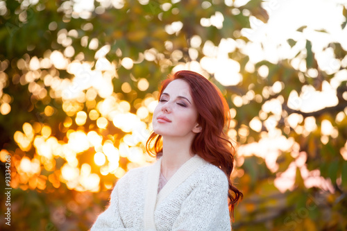 autumn, background, beautiful, beauty, clothes, sun, sunlight, sunset, sunrise, romance, romantic, dawn, lovely, countryside, fall, fashion, female, free, girl, light, model, nature, 1, portrait, red, redhead, retro, style, blazer, vintage, vogue, woman, wood, tree, leaf, young, alone, shadow, sitting, grass