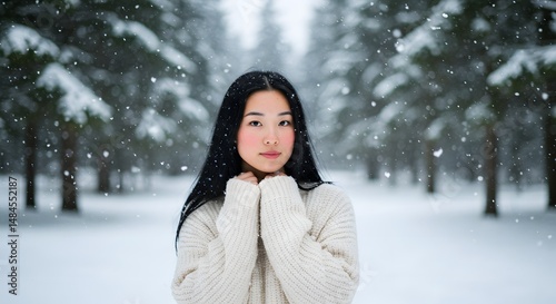 snow, winter, woman, serene, snowflake, forest, portrait, beauty, fashion, cold, model, smiling, tree, peaceful, landscape, seasonal, posing, cosy, fresh air, nature, scenery, stylish, female, standing, frosty, chill, beautiful, glove, natural, brunette, bright, young, adult, festive, cold weather, casual attire, holiday, pretty