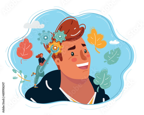 cognition, gear, repair, thinking, human, neurology, psychological, man, fix, mental, engineering, fixing, leader, mind, people, intelligence, communication, manipulation, brain, idea, innovation, concept, icon, graphic, creativity, process, signs, symbol, install, creative, success, metaphor, illustration, help