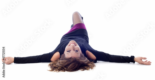 woman, girl, smiling, young, smile, happy, happiness, white, white background, studio, lying down, beauty, beautiful, pretty, diamond, jewellery, long hair, ginger, sexy, slim, zen, quiet, resting, sleepy, playing