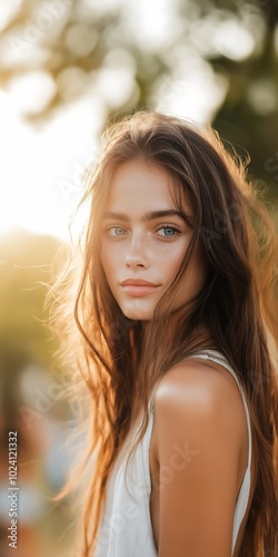 woman long hair blue eyes posing golden hour look female about modern attractive stars