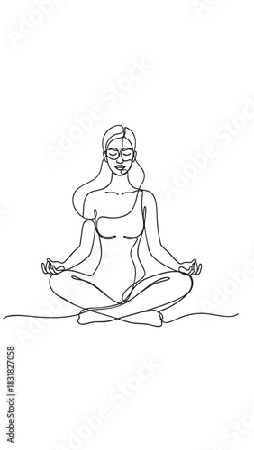 illustration, meditating, design, covered, line, vector, with, face, woman