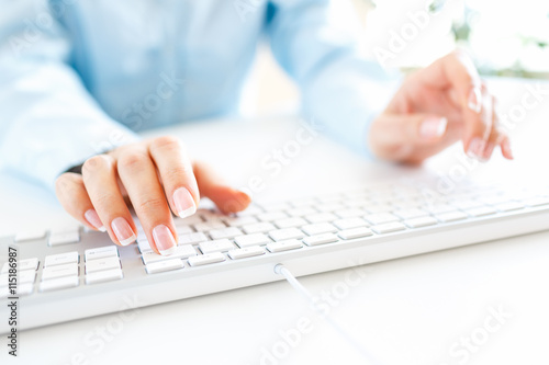 Woman office worker typing on the keyboard