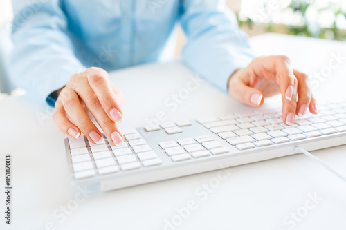 Woman office worker typing on the keyboard