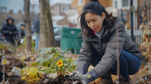 gardening, lifestyle, outdoors, planting, community, urban, woman, flower, yellow, participation, horticulture, volunteer, environment, nature, cultivation, city, ecological, neighbourhood, involvement, botanical, dirtied, foliage, flora, activity, hobby, environmentally friendly, conservation, beautification, nurture, growth, seasonal, teamwork, earth, sustainability