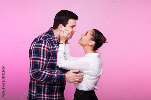 couple, happy, white, young, background, portrait, studio, beautiful, smiling, family, people, man, romantic, love, woman, together, attractive, casual attire, couple, caucasian, happiness, human relationships, cheerful, looking, pink, quality time, spending, standing, fun, person, female, girl, lifestyle, joy, beauty, adult, pretty, male, space, romance, 2, togetherness, photogenic, boyfriend, embracing, hug, laughing, lover, girlfriend, hugs