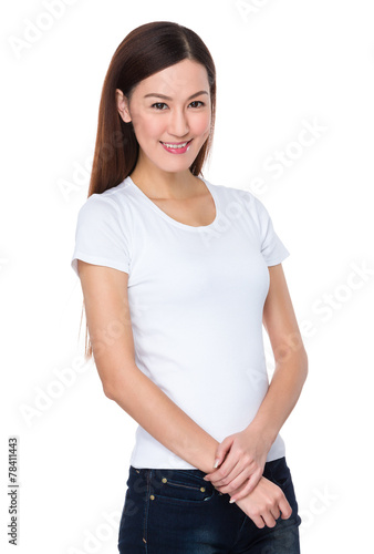 woman, lady, girl, female, japanese, korean, chinese, asia, asian, casual attire, wear, clothes, tee, t-shirt, top, vest, tank, apparel, positive, cool, fresh, content, natural, attractive, adult, smile, modern, friendly, confident, happy, isolated, white, background, people, person, portrait, 1, cut-out, studio, young, youth, beautiful, pretty